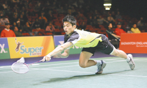 | 林丹鱼跃救球。 新华社发