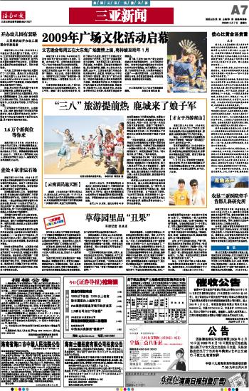 海南日报 三亚新闻 007 2009-03-071 2009年03月07日 星期六