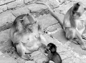 研究小组将猴群中的7只母猴作为特殊观察目标,计算它们将头发放入口中的次数和摩擦牙缝的时间。结果发现,当幼猴在眼前时,母猴将头发放入嘴里的次数比平时多一倍,用头发摩擦牙齿的时间更长,且动作幅度更夸张。研究小组称,这是首次在野生猴群中发现雌性教后代使用工具。