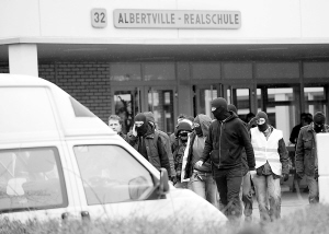 | →德国警察和救援人员在发生枪击案的中学门口忙碌。新华社/法新 |