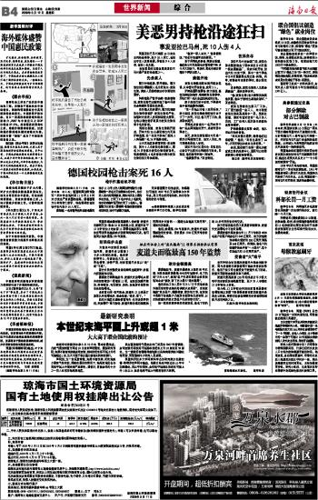 海南日报 世界新闻 012 2009-03-121 2009年03月12日 星期四