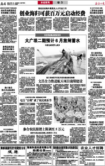 海南日报 本省新闻 004 2009-03-121 2009年03月12日 星期四
