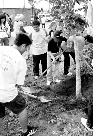 3月12日,海口市1000多人来到椰海大道植树,为省会添绿。 本报记者 古月 摄