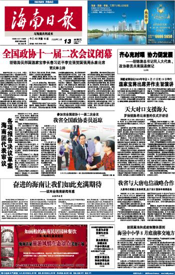 海南日报 头版 001 2009-03-131 2009年03月13日 星期五