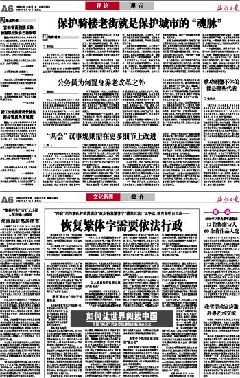 海南日报 评 论 006 2009-03-131 2009年03月13日 星期五