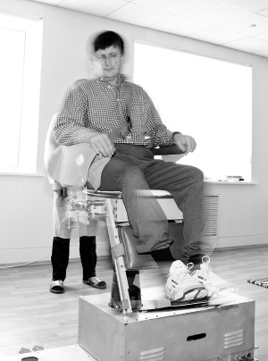 3月18日,在位于哈萨克斯坦的拜科努尔航天发射中心,被誉为“Word软件之父”的微软前研发专家查尔斯·西蒙尼在一旋转椅上进行太空飞行适应训练。西蒙尼预计于3月26日作为游客搭乘俄罗斯“联盟TMA-14”载人飞船前往国际空间站,从而创造了他本人两度飞向太空的历史。 新华社/路透