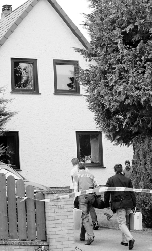德再发生枪击血案 一男子枪杀妻儿 19日,在德国汉诺威附近的霍恩森,警察进入发生枪击血案的一所房屋。警方证实,18日,一男子枪杀了妻子和自己的一名孩子,并造成自己的另外3名孩子重伤。德国温嫩登一所中学3月11日曾发生一起枪击血案,造成包括凶手在内的16人死亡。 新华社/路透