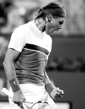 | 钢铁般的意志助纳达尔能称雄网坛。图为纳达尔在与纳尔班迪安的比赛中庆祝得分。