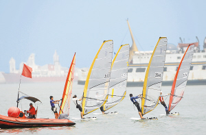 (B6版) 3月19日,2009海口帆板暨风筝冲浪邀请赛在海口市西秀海滩开幕。这是国内首次举办国际性风筝冲浪大赛,吸引了国内外众多帆板、风筝冲浪爱好者参加。 本报记者 宋国强 摄