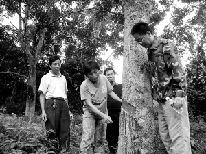 | 老胶树在何祝芳的呵护下,焕发了“第二春”。 本报记者 孙乐明 摄 |