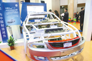 3月19日,2009中国国际节能减排和新能源科技博览会在北京展览馆举行。展会以“节能减排、振兴经济、科技创新、开拓未来”为主题。图为一家参展商展出用塑料零件代替金属零件、通过减轻自重达到节能减排效果的汽车模型。 新华社发
