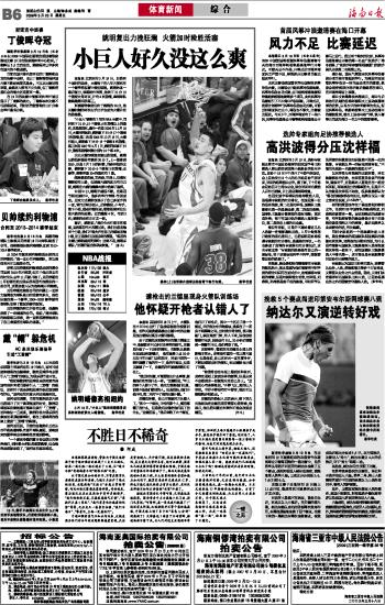 海南日报 体育新闻 综 合 014 2009-03-201 2009年03月20日 星期五