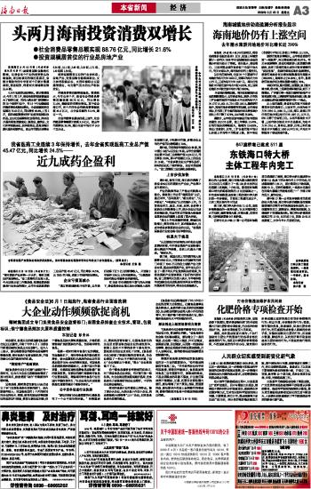 头两月海南投资消费双增长
