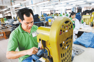 | 3月24日,职工陈柏松正在增城创兴服装集团的生产线上忙碌着。他在这家工厂已经工作了整整10年。 新华社记者 刘大伟 摄 |