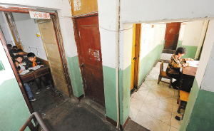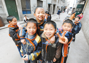 在武汉市汉兴街新松里社区一栋五层的民房里,有一所专门接收农民工子女的凌智小学。这所小学创办于1999年,目前有400多个学生在此就读。办学10年来,小学历经多次搬迁,因为之前曾位于一个菜场楼顶,被称为“楼顶小学”。搬到目前所在的小楼后,学习与活动空间依旧狭小,唯一一块室外活动场地是小楼的楼顶。坚守了10年的凌智小学继续着自己“楼顶小学”的命运。 新华社记者 程敏 摄