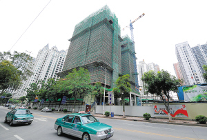 这是广州珠江新城一处在建楼盘(3月24日摄)。广东省统计局的资料显示,2009年1月至2月,广东商品房屋销售面积534.80万平方米,同比增长21.5%。
