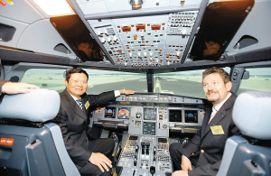 3月24日,中国民航局购买的首台空中客车A320全动模拟机在华欧航空培训中心新楼投入运营。该模拟机可动态模拟飞行实况,将被用来培训中国民航局的飞行监察员以及各航空公司的飞行员、机械师和乘务员。 新华社记者 侯俊 摄