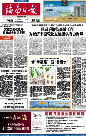 海南日报 头版 001 2009-03-251 2009年03月25日 星期三