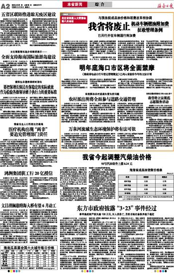 海南日报 综 合 002 2009-03-251 2009年03月25日 星期三