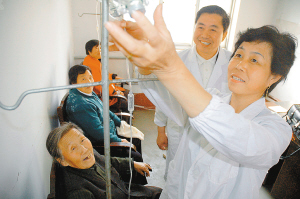 | 桓台县农民在村卫生所享受新型农村合作医疗带来的便利。 新华社发 |
