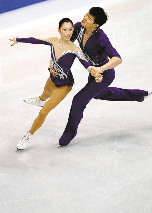 3月25日,在洛杉矶进行的世界花样滑冰锦标赛双人滑自由滑比赛中,张丹/张昊得到119.10分。两人最终以186.52分的总成绩获得亚军。 新华社发