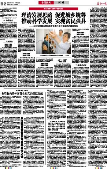 理清发展思路 促进城乡统筹推动科学发展 实现富民强县