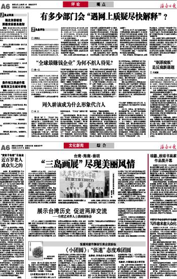 海南日报 观 点 006 2009-03-271 2009年03月27日 星期五