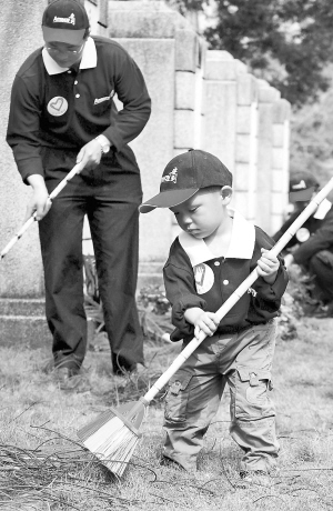 | 清明前夕,海口许多中小学生、青年志愿者,来到金牛岭烈士陵园为英烈扫墓。