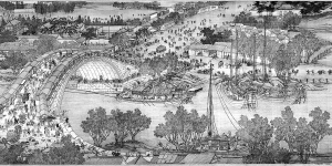 | 宋代著名的《清明上河图》,描绘的是清明时节北宋都城汴京(今河南开封)东角子门内外和汴河两岸的繁华热闹景象。 |