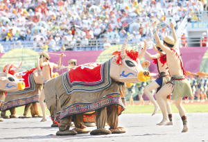 | ↑我省黎族苗族传统节日“三月三”主会场庆祝活动在陵水黎族自治县新落成的体育广场举行,精彩的文艺演出尽显传统黎族苗族文化。