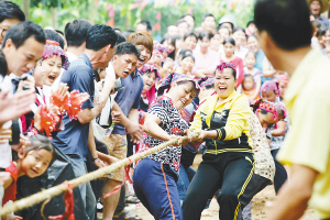 | ←儋州南丰镇黎族苗族乡亲举行丰富多彩的活动欢庆节日。 本报记者 程范淦 摄 |