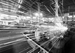 | 位于湖北省赤壁市的湖北鄂南起重运输机械有限公司的工人在打磨起重设备(3月26日摄)。 新华社记者 程敏 摄 |