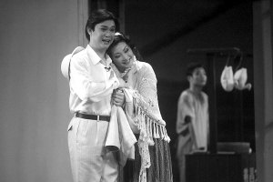 | 张卫山(前左)、李丹叶(前右)在琼剧《下南洋》排练中 本报记者 陈德雄 摄 |