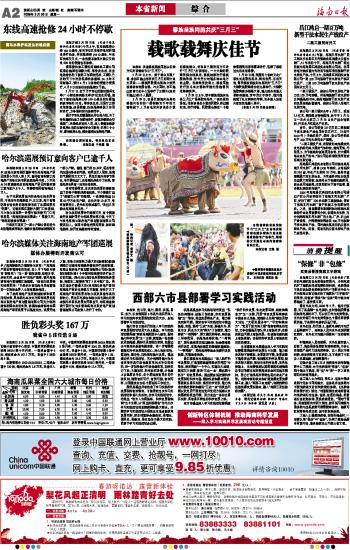 海南日报 本省新闻 002 2009-03-301 2009年03月30日 星期一