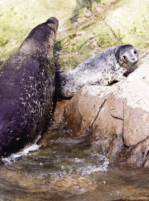 我国首次成功繁殖 斑海豹添丁 3月31日,斑海豹“大红”和幼仔在嬉戏。生活在上海动物园里的一只斑海豹日前顺利产下1只健康幼仔,这是上海动物园饲养斑海豹40多年来首次添丁,也是人工饲养斑海豹在我国首次成功繁殖。 新华社发