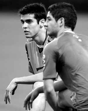 | 3月31日,卡卡(左)和帕托在训练中。 新华社发 |
