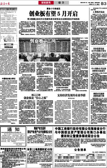 海南日报 财经新闻 011 2009-04-011 2009年04月01日 星期三