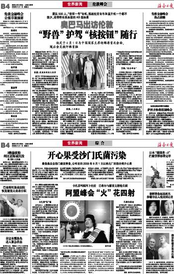 海南日报 世界新闻 012 2009-04-011 2009年04月01日 星期三