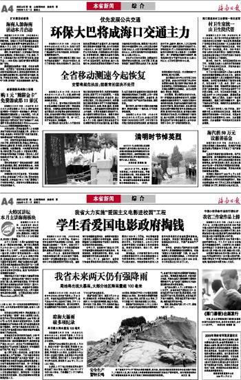 海南日报 综 合 004 2009-04-011 2009年04月01日 星期三