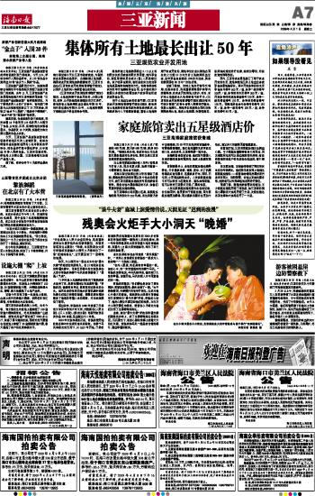 海南日报 三亚新闻 007 2009-04-011 2009年04月01日 星期三