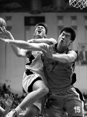 | 广东队国手朱芳雨(左)在比赛中突破。 新华社发 |