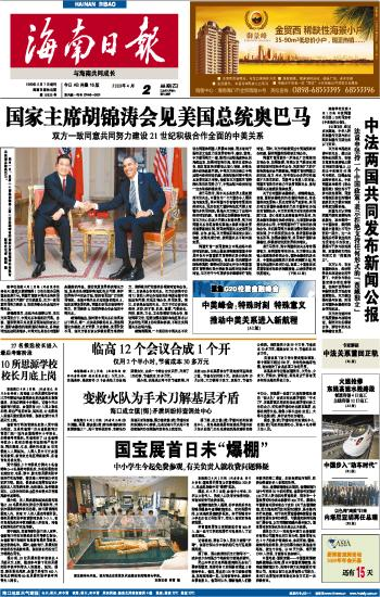 海南日报 头版 001 2009-04-021 2009年04月02日 星期四