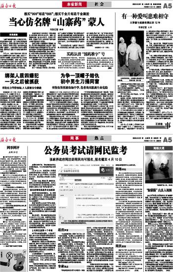 海南日报 社 会 005 2009-04-021 2009年04月02日 星期四