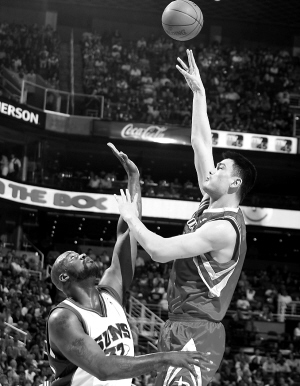 4月2日,火箭109:114不敌太阳。姚明(右)得20分14个篮板。 新华社发