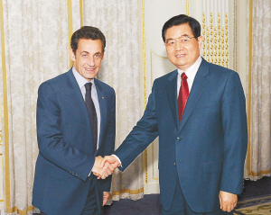 新华社伦敦4月1日电(记者熊争艳 罗辉)国家主席胡锦涛1日在伦敦会见法国总统萨科齐,就中法双边关系和应对国际金融危机等问题交换了意见。
