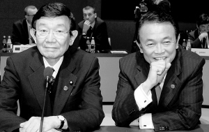 日本首相麻生太郎(右)与财务大臣与谢野馨。 本栏照片新华社发