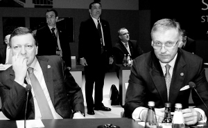 欧盟委员会主席巴罗佐(左)与欧盟轮值主席国捷克总理托波拉内克。