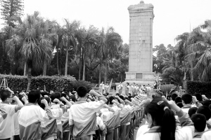 | 清明时节,海口市小学生在海口公园革命烈士纪念碑前深切悼念革命先烈。