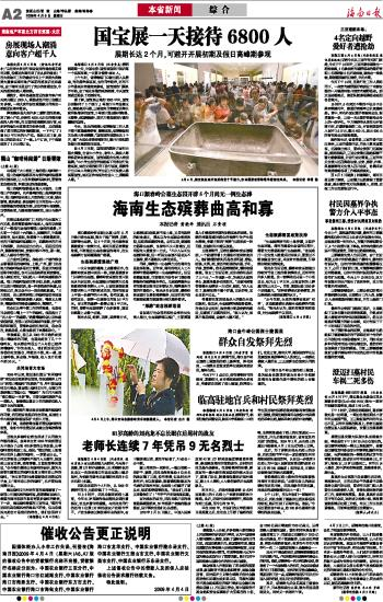 海南日报 本省新闻 002 2009-04-051 2009年04月05日 星期日