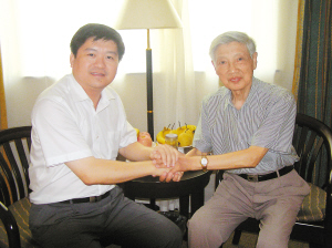 | 机工后代陈勇与中国远征军老兵在南京。 |
